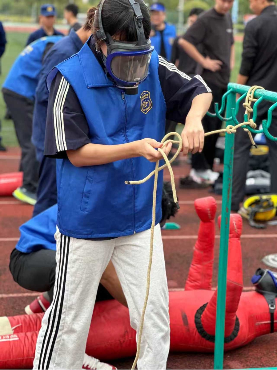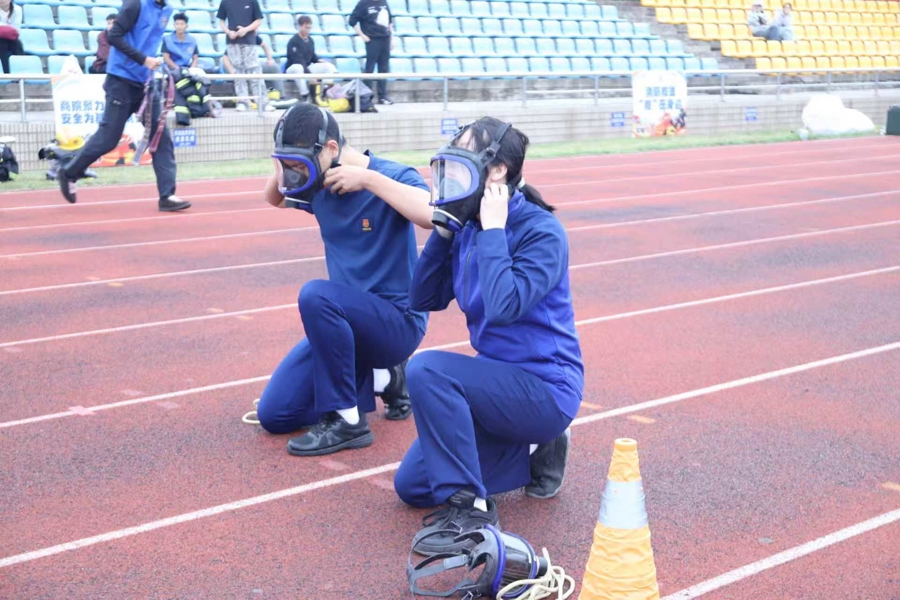 此次交流赛设置个人防护装备穿戴、灭火器灭火、防烟面罩佩戴、绳结自救互助、担架疏散、水枪打靶等多个项目。通过模拟初起火灾扑救、人员自救互助等场景,检验个人技能、团队配合、应急处置、快速展开等综合能力,具有极强的针对性和实战性。