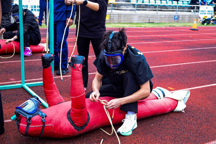 参赛队员奋勇争先、协作配合,以熟练精准的动作完成挑战项目,最终,上海城建职业技术学院代表队获第一名,上海商学院代表队获第二名,上海电子信息职业技术学院代表队获第三名。